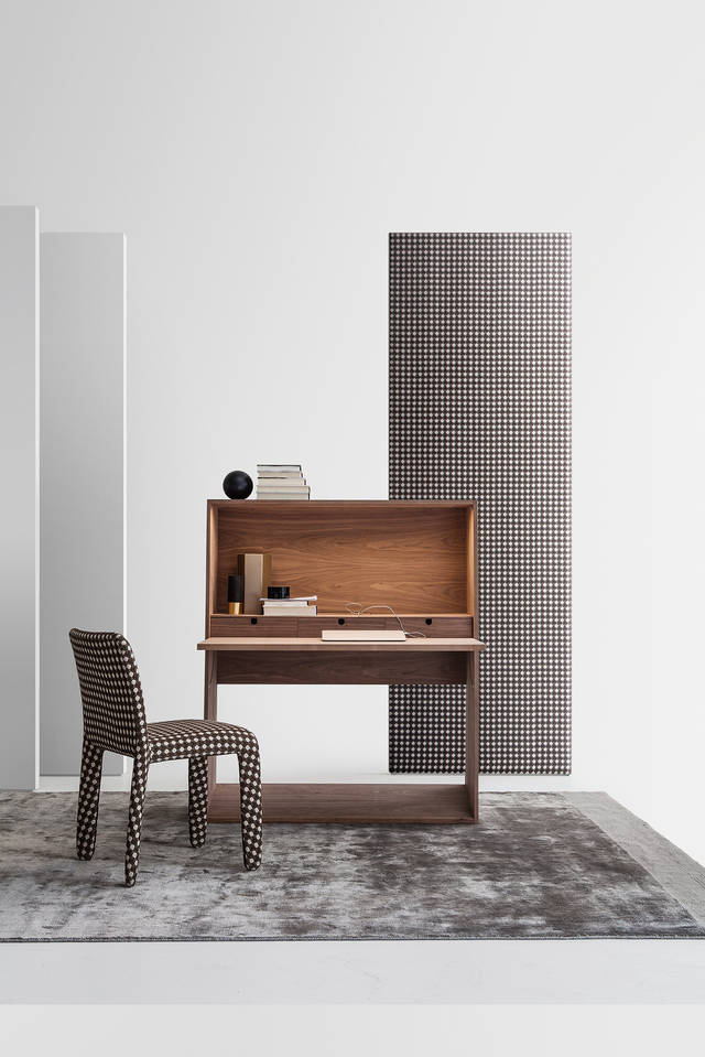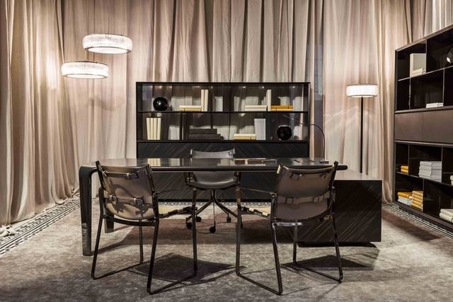 缤纷饱满色调的FENDI Casa,反而在办公家具的设计上,选择较为沉稳内敛的深色质地,依旧不减义式奢华风尚,格调与氛围,在隐约中发散低调却不落俗套的办公空间。