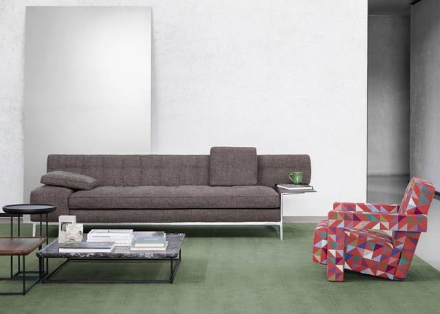 ▲Cassina的Volage EX-S系列沙发带有嵌入式功能性矮桌,为办公空间注入活泼氛围。