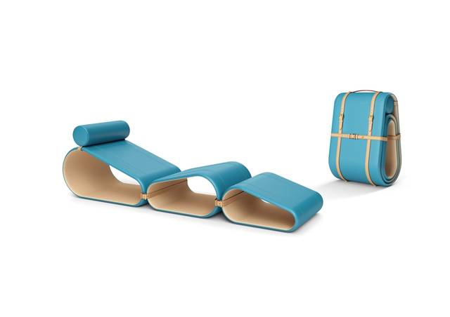 ▲Louis Vuitton LOUNGE CHAIR躺椅,设计师Marcel Wanders将其定义为「收放自如的移动绿洲。Louis Vuitton运用随性却细腻的品牌风格以及精湛的皮革工艺,创造出适合放在办公空间的轻便易收纳家具;