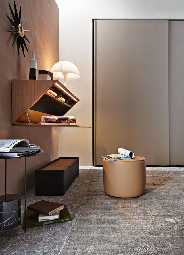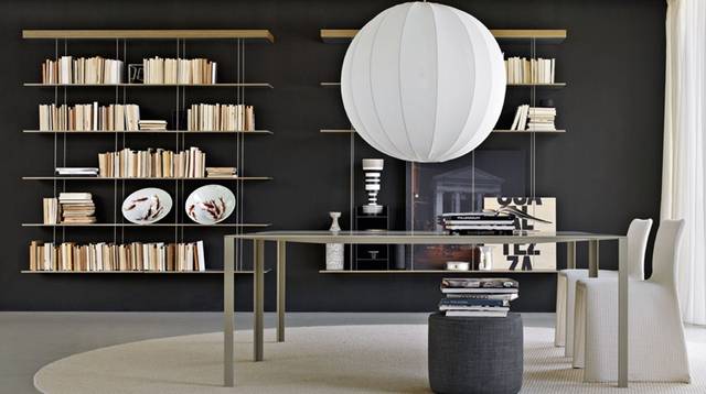 ▲Molteni & C的GRADUATE书柜,把单独层板锚定在墙上或天花板上,实现视觉上的悬浮效果。